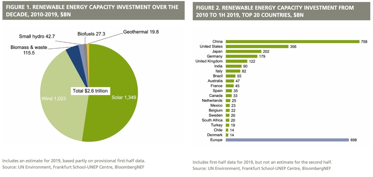 Important numbers also emerge from Global Trends in Renewable Energy Investment 2019, commissionato dall’UNEP, il Programma delle Nazioni Unite per l’ambiente. Nell’arco di un decennio le rinnovabili hanno oltrepassato i 2.600 miliardi di dollari di investimenti.
